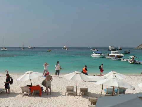 Unser Ankerplatz. Am Tage zwischen 9 und 16 Uhr ist hier der Bär los. Viele Boote aus der Umgebung bringen Strandgäste und Taucher in die Bucht. Aber ab 16 Uhr tritt dann Ruhe ein.
