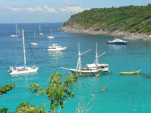 Nach der Fotosession segelten wir los. Burt blieb noch einen Tag länger auf Phi Phi Don und folgte uns am nächsten Tag nach Phuket in die Bucht Ao Chalong.