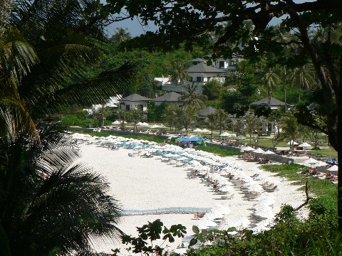Das Hotel im Scheitel der Bucht. Der Sand war pulverfein und fast schlohweiß.
