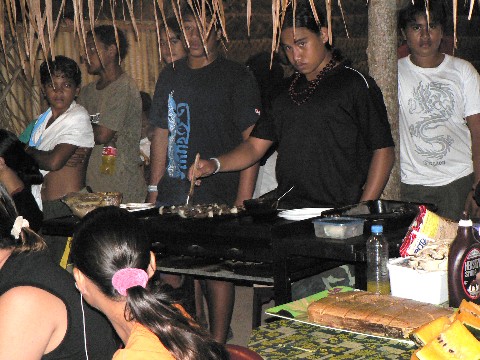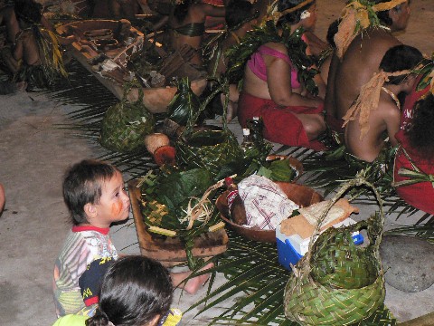 Drei Tage, von Freitag bis Sonntag, wurde jeden Abend auf dem kleinen Festplatz gesungen und getanzt. Das gesamte Dorf und viele Bewohner aus der Umgebung waren versammelt und unendlich viele Kinder tobten durch die Gegend. Der Bürgermeister von Hakahau eröffnete mit einer längeren Rede das Fest. Xavier meinte nur " Er redet viel aber sagen tut er nichts." Kaum einer hörte der formellen Rede zu, das erinnerte uns ein wenig an zu Hause. Aber dann ging es los.