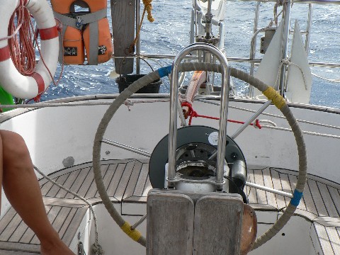 Unsere Notpinne im Einsatz.. Das Steuerrad war außer Funktion.