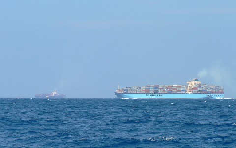 Unterwegs trafen wir unendlich viele Container Schiffe. So viele hatten wir auf unserer gesamten Reise noch nicht gesehen. Natürlich kannten wir solch ein Verkehr aus dem Englischen Kanal und dem Verkehrstrennungsgebiet der Malacca Straße, aber hier auf "freier Wildbahn" waren wir dann doch etwas überrascht.