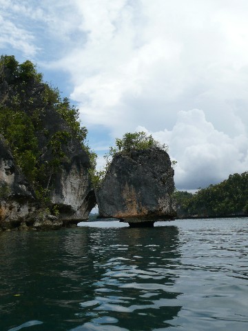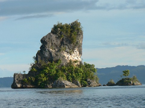 Nach zwei einhalb Tagen erreichten wir die Inselgruppe Raja Ampat mit seiner Hauptinsel Waigeo. Diese etwas größere Insel ist sehr zerklüftet und bietet viele geschützte Buchten. Das einzige Dilämmer war, dass es selten gute Buchten zum ankern gab. Die Ankertiefen lagen meistens um die 20 Meter und für einfach zu tief. Hinzu kommt, dass wir kaum nautische Unterlagen über dieses Gebiet besaßen und uns nur anhand unserer elektronischen Seekarten orientieren konnten. Aber die sind auch in solchen abgelegenen Gebieten zumeist ungenau und kaum detailgetreu. Also blieb uns nichts anderes übrig als auf gut Glück einen geeigneten Ankerplatz zu suchen. Und wir hatten richtiges Glück.