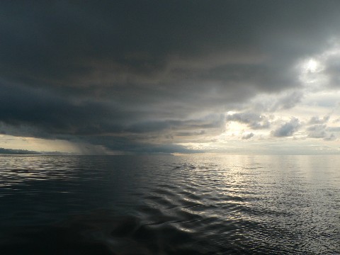 Unterwegs mußten wir immer wieder mit Flauten kämpfen. Ab und zu kam eine dunkle Wolke, die aber selten guten segelbaren Wind mit brachte. In der Nacht gab es dazu noch das Schauspiel der Gewitterblitze, welche sehr beeindruckend aussehen, wenn dazu die Nacht noch rabenschwarz ist. Regen gab es auch mal, war aber nicht immer die Regel.