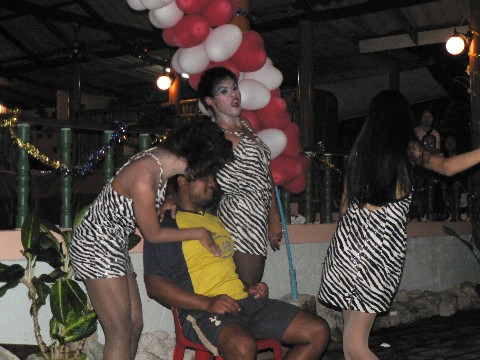 Solch ein Weihnachtsprogramm hatten wir alle noch nicht gesehen. Zwischen richtig guter Darstellung und fast peinlicher Aufführung war alles vertreten. Ein Transvestit mit mehreren Gesangs und Tanzdarbietungen war zu sehen, eine Mädchengruppe tanzte zu verschiedenen Melodien, und Playback-Singen zu internationalen Hits waren im Programm. Einen Weihnachtsmann gab es auch, dem fehlte zwar ein Schneidezahn, was man unschwer erkennen konnte, wenn er einen freundlich anlächelte und Schokolade aus seinem Sack zauberte aber das tat diesem Abend überhaupt keinen Abbruch. Wir hatten richtig Spaß und so schnell werden wir dieses Programm nicht vergessen.