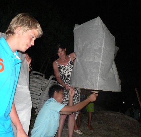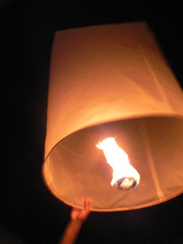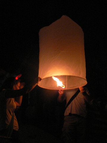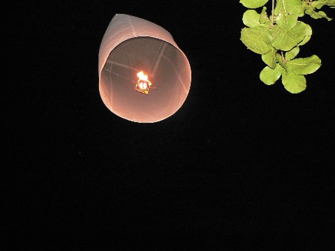 Zum Abschluß des abends wurden Lucky Ballons steigen gelassen. Sie sollen Glück bringen, wenn man sie in den Himmel aufsteigen läßt....