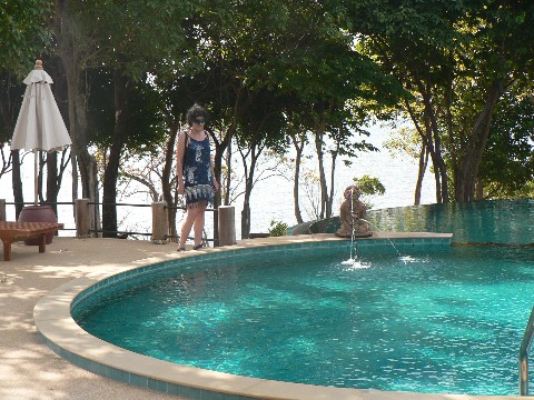 Hier eine Poolanlage eines anderen Resorts auf der Ostseite der Insel. Das Resort heißt BAN RAYA, liegt unter Palmen und bietet seinen Gästen kleine Reihenhäuser als Unterkunft. Es ist bei weitem nicht so luxuriös wie das RACHA in unserer Bucht aber seine Lage auf einem Hügel mit Steinklippen war beeindruckend. Auch hier die Adresse zum reingucken