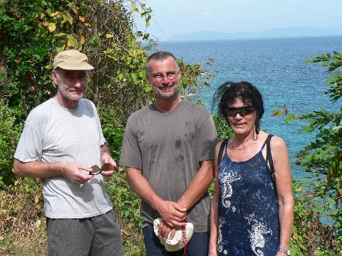 In unserer Bucht, die im Westen der Insel liegt und Batok Bay heißt, ist ein größeres Hotel der Oberklasse und ein kleines der Mittelklasse. Zudem gibt es hier eine Tauchbasis, ein kleines Strandrestaurant, eine Mini-Strandbar und einen kleinen Verkaufsladen. Hierher kommen täglich von der Hauptinsel Phuket Boote mit einer Vielzahl von Tauchern gefahren, um sie in dieser Bucht zum einem Tauchgang abzusetzen oder nur um Touristen zum Sonnenbaden an den Strand zu bringen. Ab 16 Uhr zieht dann die Ruhe ein. Alle Ausflugsboote bingen dann ihre Gäste zurück nach Phuket und nur wir Segler verbleiben in der Bucht. Mit uns zusammen liegt auch die YAGOONA, die ebenfalls Besuch aus Deutschland hat. Svenjas Bruder ist für 3 Wochen gekommen.