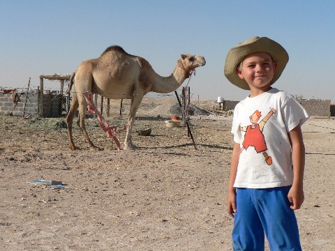 Unterdessen war ich mit Yannic auf Erkundungstour gegangen. Natürlich fanden wir auch ein Kamel das in der Wüste stand. Kamele sind Säugetiere und gehören zu den Paarhufern. Innerhalb dieser Gruppe sind sie die einzigen dieser Familie, die den Schwielensohlern angehören. Die Kamele lassen sich in zwei Gruppen unterteilen. Die erste Gruppe bilden die Altweltkamele mit dem Dromedar, dem Einhöckrigem Kamel und dem Trampeltier, dem Zweihöckrigem Kamel. Die zweite Gruppe umfasst die Neuweltkamele zu denen die Lamas und die Alpakas zählen, die vorwiegend in Südamerika leben.